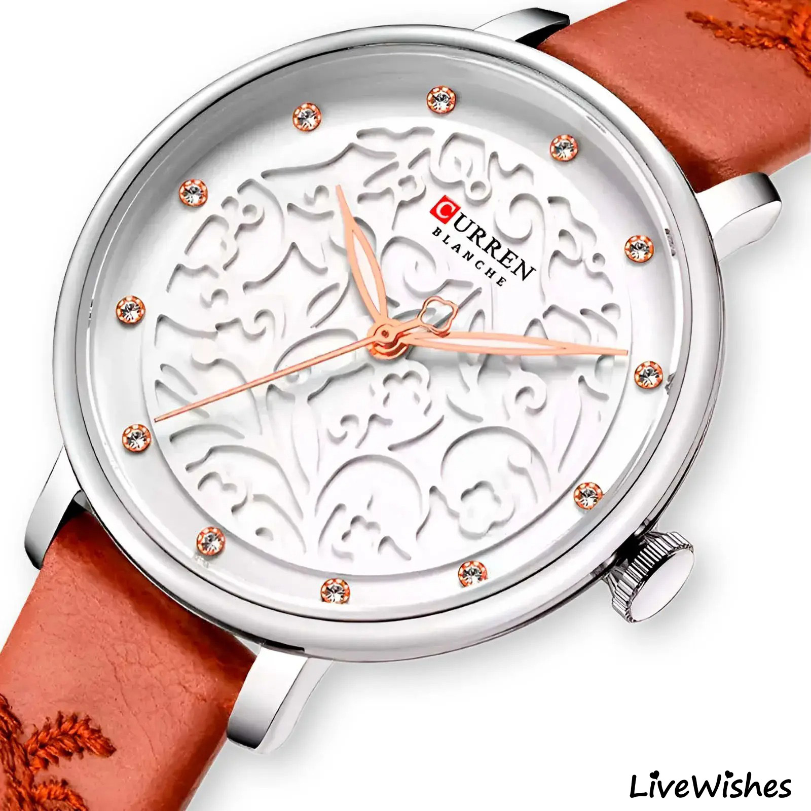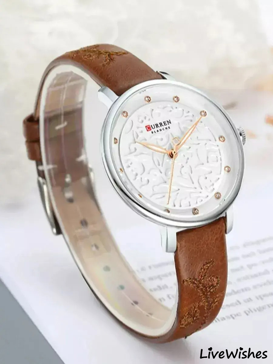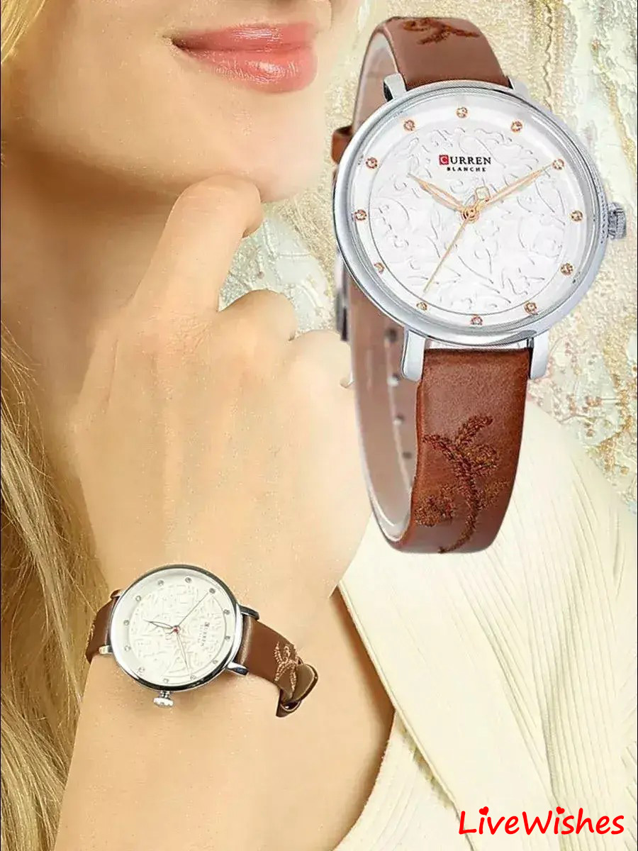 Модные женские часы CURREN с объёмным узором на циферблате подчеркнут элегантность образа!