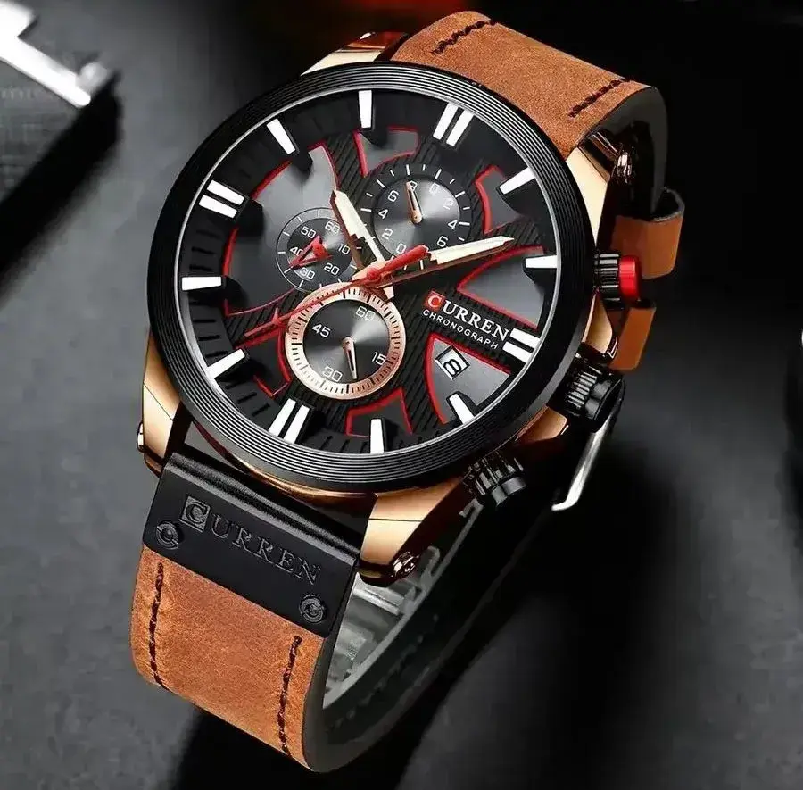Представляем вашему вниманию очень красивые мужские наручные часы, которые станут идеальным дополнением образа современного мужчины. Их корпус черного цвета выполнен из нержавеющей стали, что обеспечивает долговечность и стильный внешний вид. Коричневый кожаный ремешок с оригинальной стильной отделкой добавляет изысканный стиль и подчёркивает спортивный образ, подходящий для стиля casual (кэжуал). Эти кварцевые наручные мужские часы характеризуются надежностью и точностью. Кварцевый механизм позволяет не заботиться о точности хода, вам не нужно их заводить. Водонепроницаемость 3АТМ позволяет смело гулять под дождем, не беспокоясь за их сохранность. Эти часы не только красивые и стильные, но и функциональные. Хронограф позволяет измерять затраченное время, а отображение даты поможет вам не пропустить важное событие. Современный модный аксессуар мгновенно улучшает имидж и становится необходимым украшением мужской руки. Оригинальный мужской аксессуар в любой ситуации выделит вас и обеспечит особое внимание и отношение. Часы наручные надежный и полезный спутник успешного мужчины, который следит за внешним видом, ведет активный образ жизни, занимается спортом и заботится о близких, будь то спортсмен, военный, руководитель, служащий, рабочий, сын или отец. Прекрасный подарок на Новый год, День Святого Валентина, 23 февраля, профессиональный праздник или любой другой особенный момент, такие как День рождения, Юбилей, годовщина совместной жизни или День свадьбы. Они порадуют папу, мужа, сына, брата, друга, коллегу или любимого мужчину. Идеальны также для выражения уважения начальнику, тренеру или деловому партнеру по бизнесу. Часы мужские наручные упакованы в подарочную коробку и укомплектованы запасной батарейкой, что делает идеальным подарком, готовым к эксплуатации.