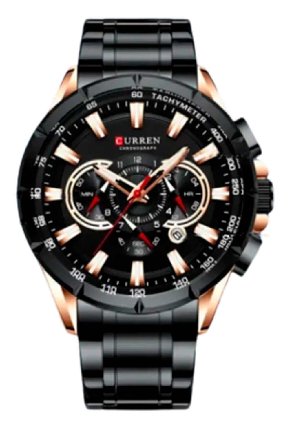 Мужские наручные часы - это не просто предмет, показывающий время, это стильный и полезный аксессуар, который добавляет яркую деталь в образ современного мужчины. Они уже стали необходимым модным и стильным украшением мужской руки, привлекая к себе внимание и подчеркивая мужественность своего обладателя. Оригинальный дизайн циферблата подчеркнет ваш индивидуальный стиль. Наши мужские наручные часы изготовлены из высококачественной нержавеющей стали, что придает им прочность и долговечность. Стальные корпус и браслет черного цвета с золотистой отделкой на циферблате делают их еще более стильными и привлекательными. Оригинальная застежка браслета бабочка обеспечивает комфортную посадку на запястье, плотно прилегая к нему. Эти часы не только красивые и стильные, но и функциональные. Хронограф позволяет измерять время затраченное на выполнение какого либо действия, а отображение даты делает использование часов еще более удобным. С помощью тахиметра вы сможете измерить скорость своего движения. Кварцевый механизм обеспечивает стабильный и точный ход часов, который не подведет в самых важных моментах. Мужские наручные часы идеально подходят для спортивных занятий, прогулок, романтических свиданий, путешествий и даже деловых встреч. Они подчеркивают статус и вкус своего владельца, стремящегося всегда быть в тренде, делая его образ еще более выразительным и уверенным. Это отличный подарок на любой праздник - Новый год, 23 февраля, День влюбленных, День учителя, День свадьбы, День рождения, юбилей, годовщину совместной жизни, профессиональный праздник, абсолютно любое значимое событие. Такие яркие и оригинальные часы подходят как для молодых, так и для взрослых мужчин, которые ценят качество, стиль и надежность. Пусть ваше запястье всегда украшает элегантный аксессуар, который будет дополнять ваш образ и подчеркивать вашу индивидуальность. Прекрасный бонус - подарочная упаковка!