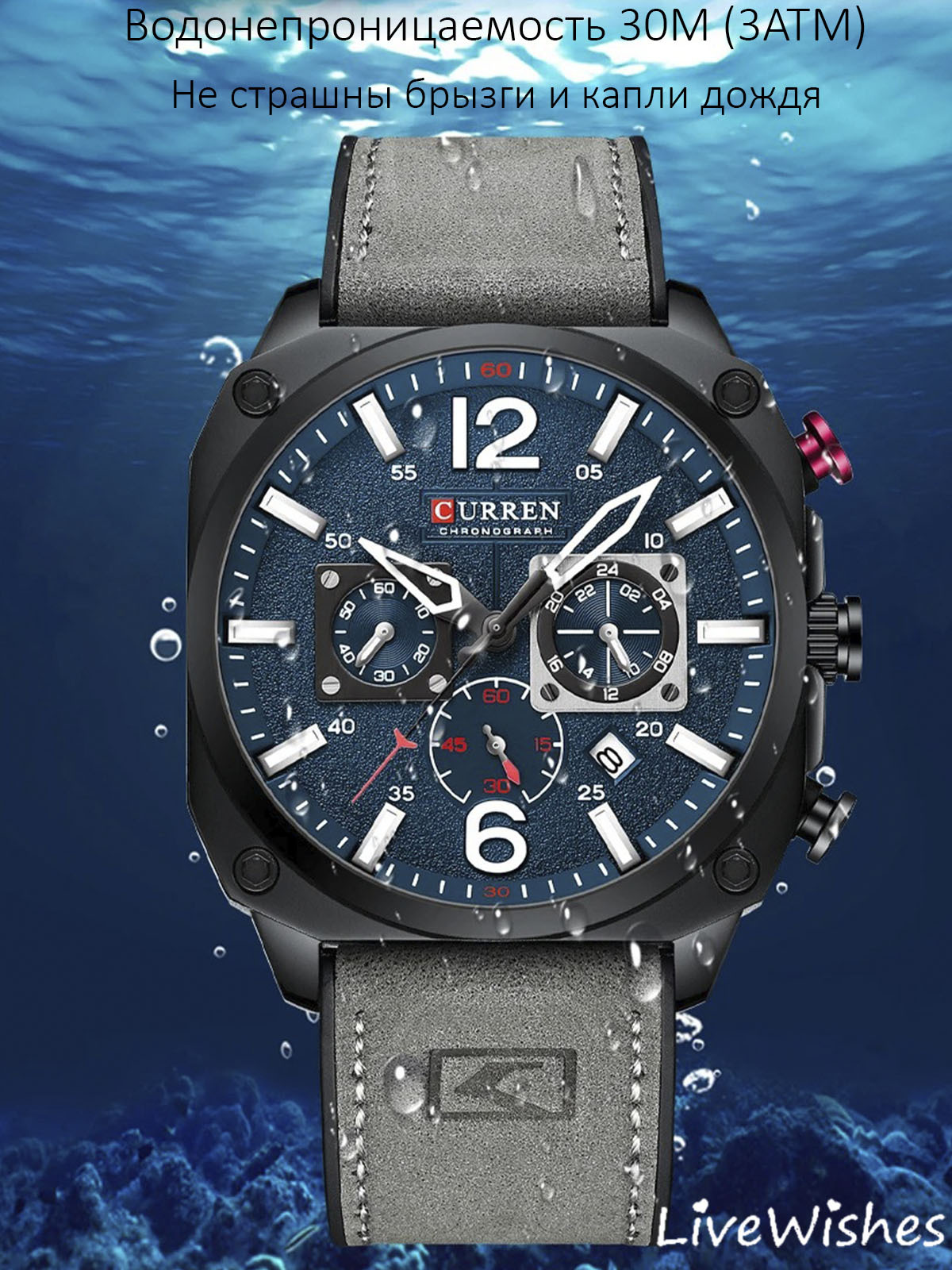 Мужские наручные часы - это не просто предмет, показывающий время, это стильный и полезный аксессуар, который добавляет яркую деталь в образ современного мужчины. Они уже стали необходимым модным и стильным украшением мужской руки, привлекая к себе внимание и подчеркивая мужественность своего обладателя. Оригинальный дизайн циферблата подчеркнет ваш индивидуальный стиль. Наши мужские наручные часы изготовлены из высококачественной нержавеющей стали, что придает им прочность и долговечность. Матовый серый кожаный ремешок и синий циферблат с большими белыми цифрами делают их еще более стильными и привлекательными. Застежка пряжка с несколькими отверстиями обеспечивает комфортную посадку на запястье почти любого размера, плотно прилегая к нему. Эти часы не только красивые и стильные, но и функциональные. Хронограф позволяет измерять время затраченное на выполнение какого либо действия, а отображение даты делает использование часов еще более удобным. Кварцевый механизм обеспечивает стабильный и точный ход часов, который не подведет в самых важных моментах. Мужские наручные часы идеально подходят для спортивных занятий, прогулок, романтических свиданий, путешествий и даже деловых встреч. Они подчеркивают статус и вкус своего владельца, стремящегося всегда быть в тренде, делая его образ еще более выразительным и уверенным. Это отличный подарок на любой праздник - Новый год, 23 февраля, День влюбленных, День учителя, День свадьбы, День рождения, юбилей, годовщину совместной жизни, профессиональный праздник, абсолютно любое значимое событие. Отличный сюрприз для сына, брата, друга, отца, коллеги или партнера Такие яркие и оригинальные часы подходят как для молодых, так и для взрослых мужчин, которые ценят качество, стиль и надежность. Пусть ваше запястье всегда украшает элегантный аксессуар, который будет дополнять ваш образ и подчеркивать вашу индивидуальность.