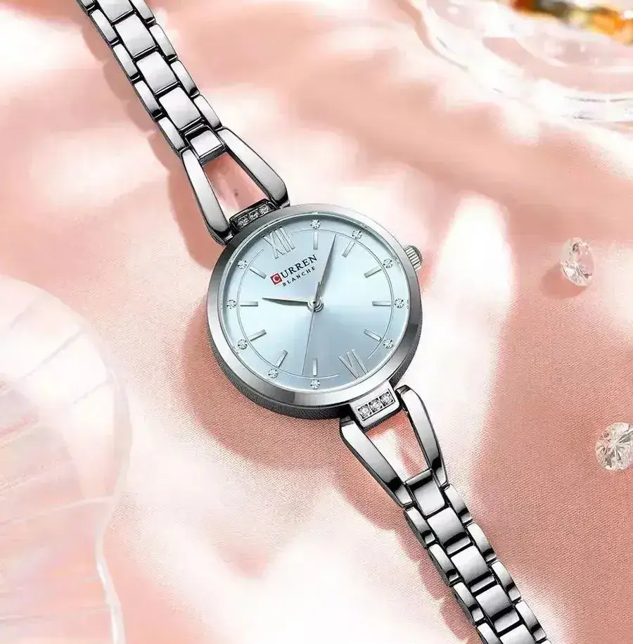 Женские часы наручные с голубым перламутровым циферблатом - модное и функциональное украшение для женщины от бренда LiveWishes. Металлический браслет серебристого изысканной формы, голубой перламутровый циферблат со стразами на креплениях придают изысканность этой незаменимой детали элегантного образа. Часы, незаменимый полезный аксессуар для женщин, которые следят за безупречным стилем. Этот удобный аксессуар наручные часы подойдет как для повседневного использования, так и для особых событий, элегантное украшение наряда на вечеринке или на бизнес встрече. Женские наручные часы кварцевые с утонченным корпусом и изысканным циферблатом - дополнят любой образ и станут изюминкой гардероба в любой ситуации, они подходят как для праздника, так и для деловой встречи. Нежный белый циферблат хорошо сочетается с оригинальными стразами, заменяющими цифры. Удобная застежка делает это украшение очень приятным и простым в использовании. Металлический браслет плотно облегает запястье и обеспечивает комфорт при ношении, к тому же украшает каждый день владелицу. Защита от влаги делает этот аксессуар полезным как для спортсменок, так и для девушек, которые любят путешествовать. Водонепроницаемость 3 атм обеспечивает защиту от капель дождя или при мытье рук, плавать и купаться в часах не рекомендуется. Эти часы сделают вашу руку привлекательной и изящной. Изысканный подарочный вариант для любимой подруги, жены, мамы, сестры или коллеги на любое торжество! Часы упакованы в красивую подарочную коробочку, в комплект входят запасная батарейка и салфеточка для ухода за циферблатом.