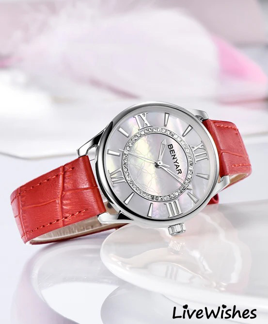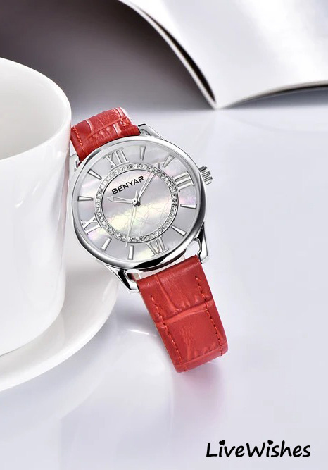 Ремешок из натуральной кожи кораллового розового цвета и корпус круглой формы с перламутровым циферблатом в серебристом корпусе добавляют изысканности современному образу. Надежная застежка пряжка обеспечивает комфортное надевание и плотное прилегание к женскому запястью разных размеров. Особо прочное стекло защищает от ударов. Водонепроницаемость 3ATM надежно защищает ваши часы от капель во время прогулок под дождем и мытье рук. Такой аксессуар придаст уверенности при встречах с деловыми партнерами, любые переговоры будут завершены успешно. Стильные женские наручные часы обеспечивают демонстрацию смелости и решительности романтичной современной женщины.