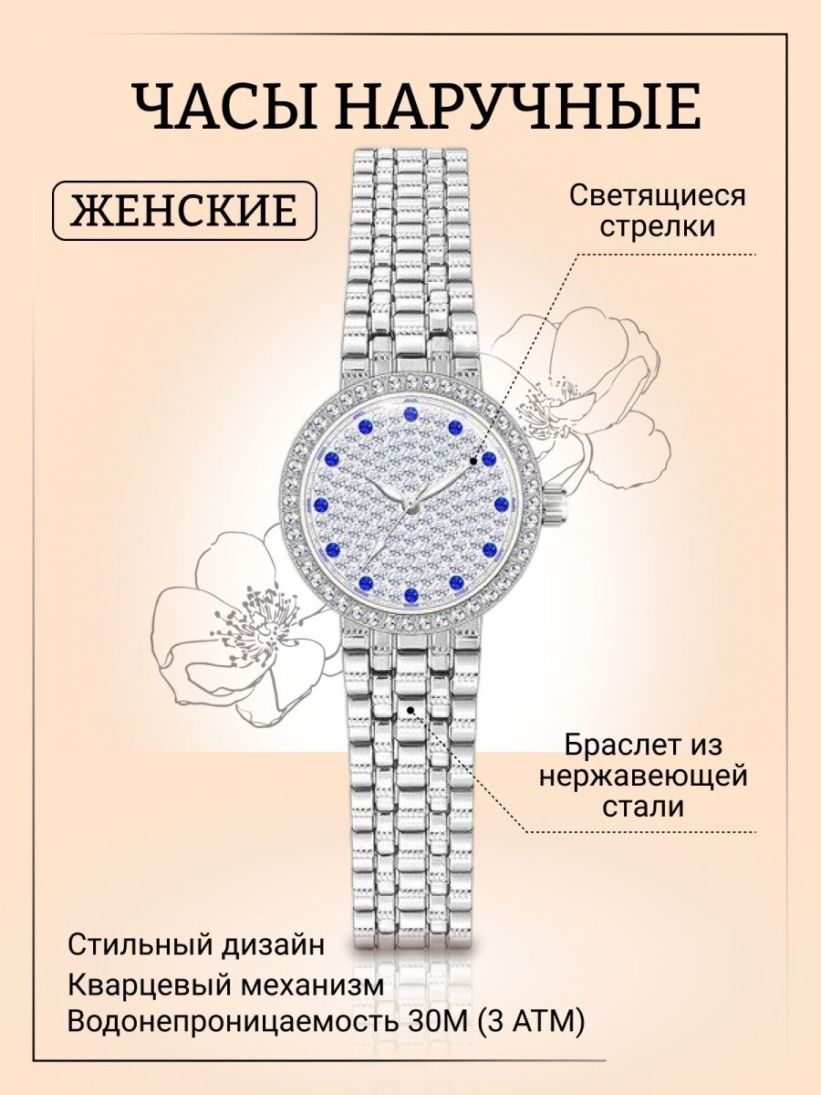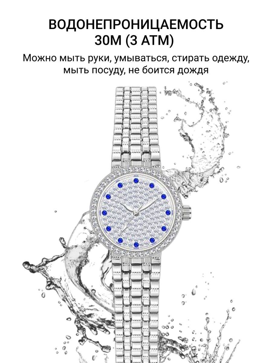 Часы женские сверкающие стразами круглые - красивый, модный и полезный аксессуар. Часы смотрятся очень стильно, подойдут под любой гардероб - платье, брюки, джинсы, рубашку, блузку, деловой костюм, вечерний наряд. Утонченный, элегантный дизайн наручных часов подчеркнет ваш безукоризненный вкус и стиль в любой ситуации. Циферблат, усыпанный стразами на браслете с оригинальным плетением, делает часы изысканным украшением, добавляя блеска и шарма обладательнице. Модель имеет кварцевый механизм, а это значит, что вам не придется их заводить. Светящиеся стрелки помогут определить время в темное время суток. Водонепроницаемость 30М (3 АТМ), им не страшен дождь, можно спокойно мыть руки, посуду. Модные оригинальные часы отличный вариант для офиса, учебы, путешествий, вечеринок, деловых встреч и романтических свиданий. Наручные часы добавят очарования и уверенности элегантной обладательнице. Кварцевые наручные часы прекрасно подходят для подарка, любимой девушке, молодой женщине, подруге, сестре, коллеге, руководителю. Наши наручные часы понравятся любительницам активного и здорового образа жизни, ухоженным красавицам с безупречным вкусом. Прекрасный подарок на 8 марта, День влюбленных, День рождения, годовщину знакомства, для романтического свидания.